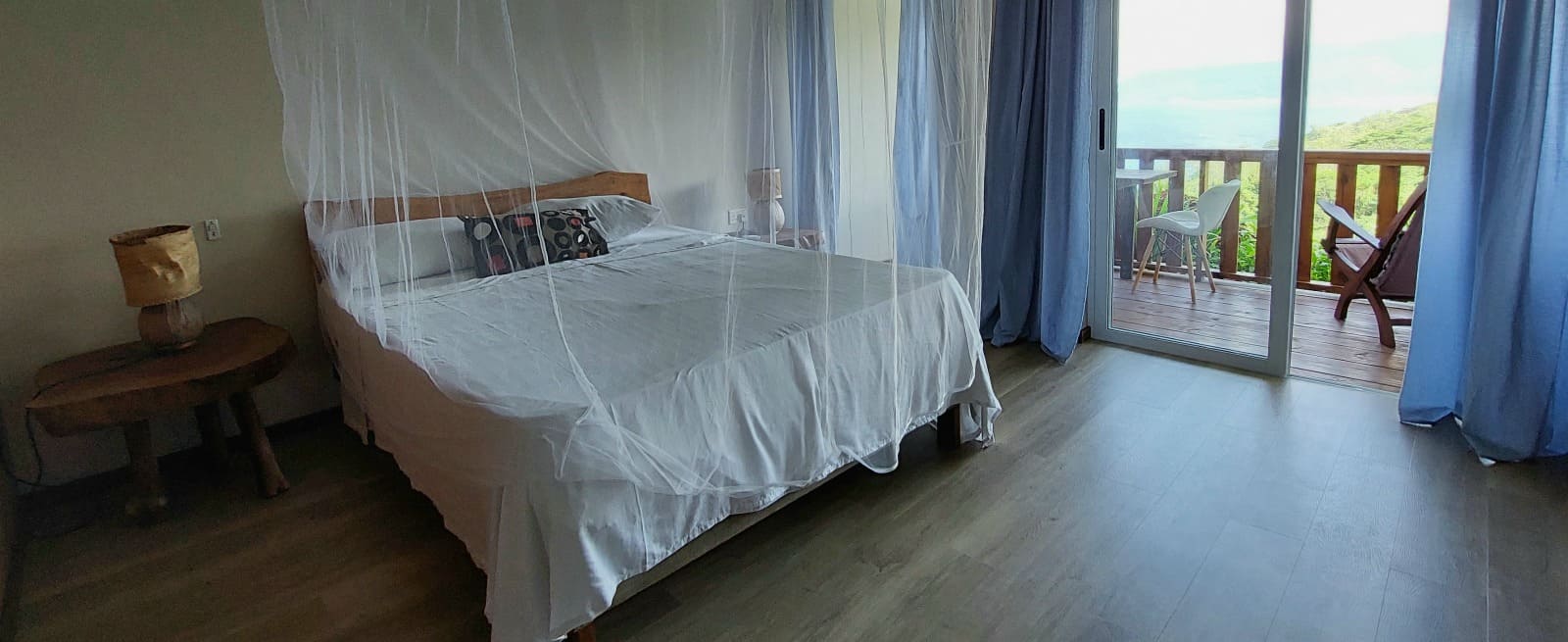 Tolles Hotel! Daniel ist der netteste und reaktionsschnellste Manager. Ich kontaktierte ihn per WhatsApp und er buchte ein Apartment für mich, schickte eine Bestätigung und stimmte zu, bei der Ankunft in bar zu zahlen (Kartenzahlung ist nicht möglich). Er gewährte mir außerdem einen Rabatt. Als Kompliment brachte er mir eine Tüte Obst mit und nahm mich mehrmals mit zum Einkaufen. Das Apartment ist mit allem ausgestattet, was man braucht: zwei Zimmer, Küche, Bad und eine riesige Terrasse. Der Blick von der Terrasse aufs Meer ist einfach fantastisch! Überall Grün, Vögel, Geckos. Es gibt alle Utensilien, außer einer Kaffeemaschine – ich habe eine türkische mitgenommen. In der Nähe befinden sich zwei Strände: Anse Petit und Anse Soleil. 7-10 Minuten zu Fuß, ein steiler Abstieg/Aufstieg zur/von Anse Soleil. Anse Petit ist sanfter, aber etwas länger. Der nächste Laden ist 10 Gehminuten entfernt. Sie können Daniel bitten, Sie zum Laden und zurück zu bringen, er ist sehr nett.