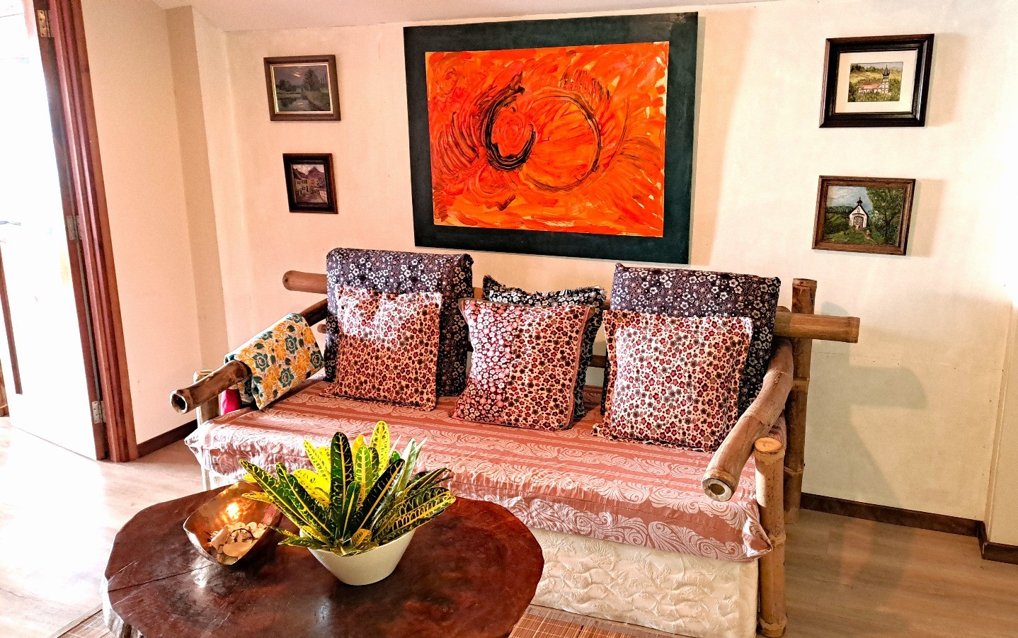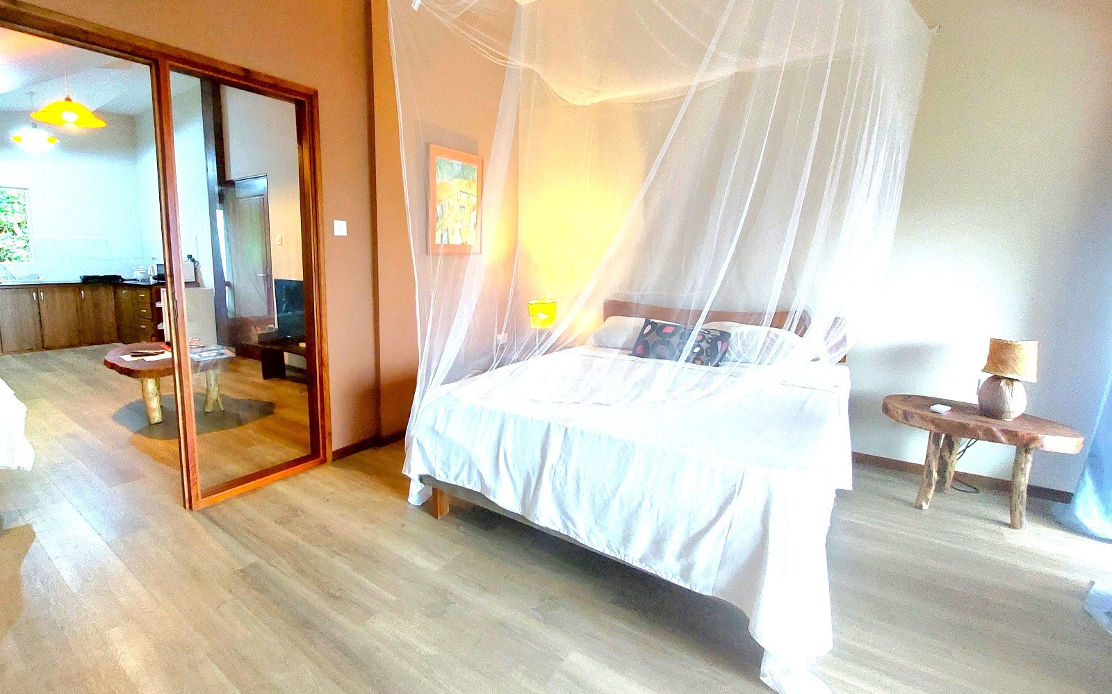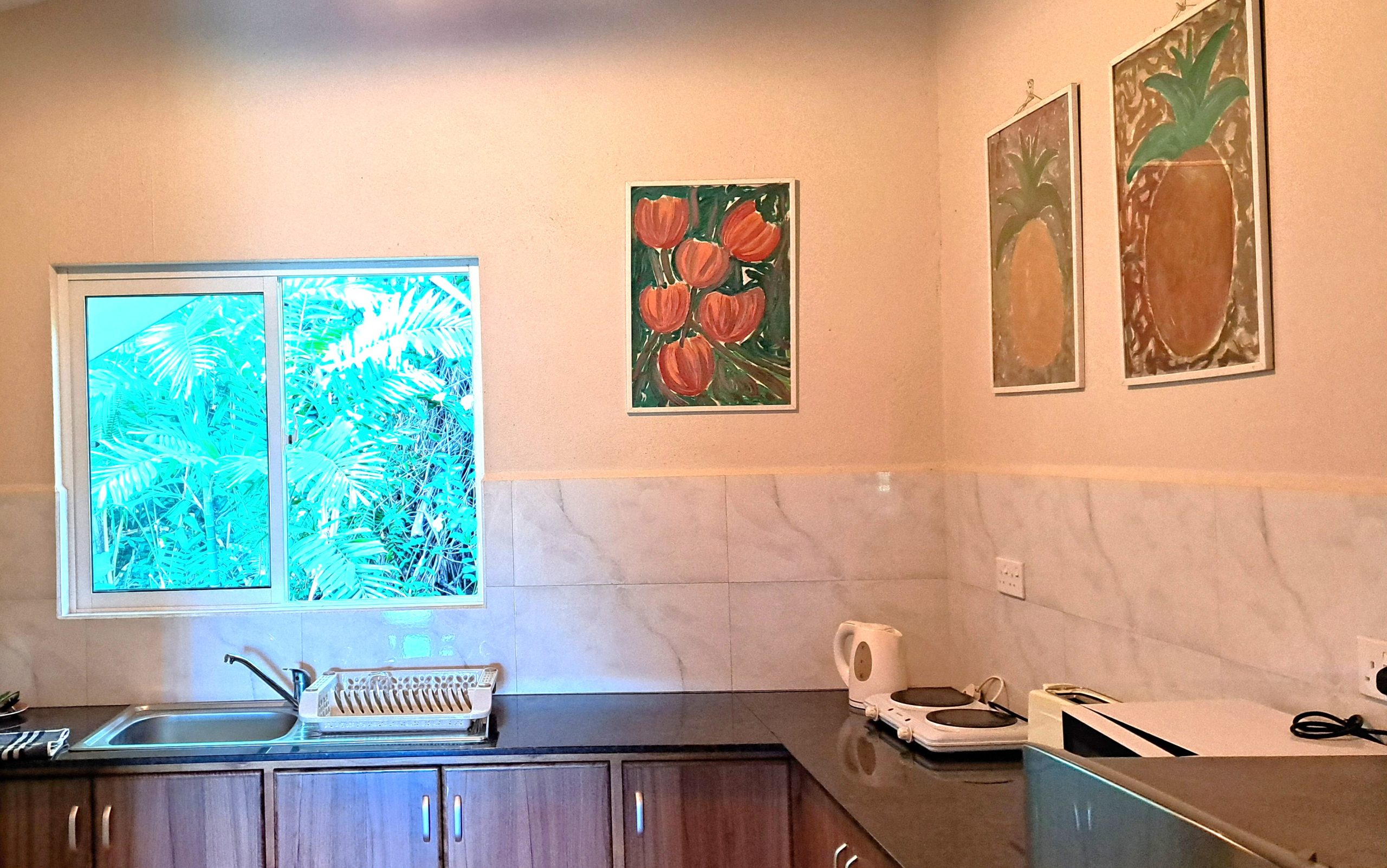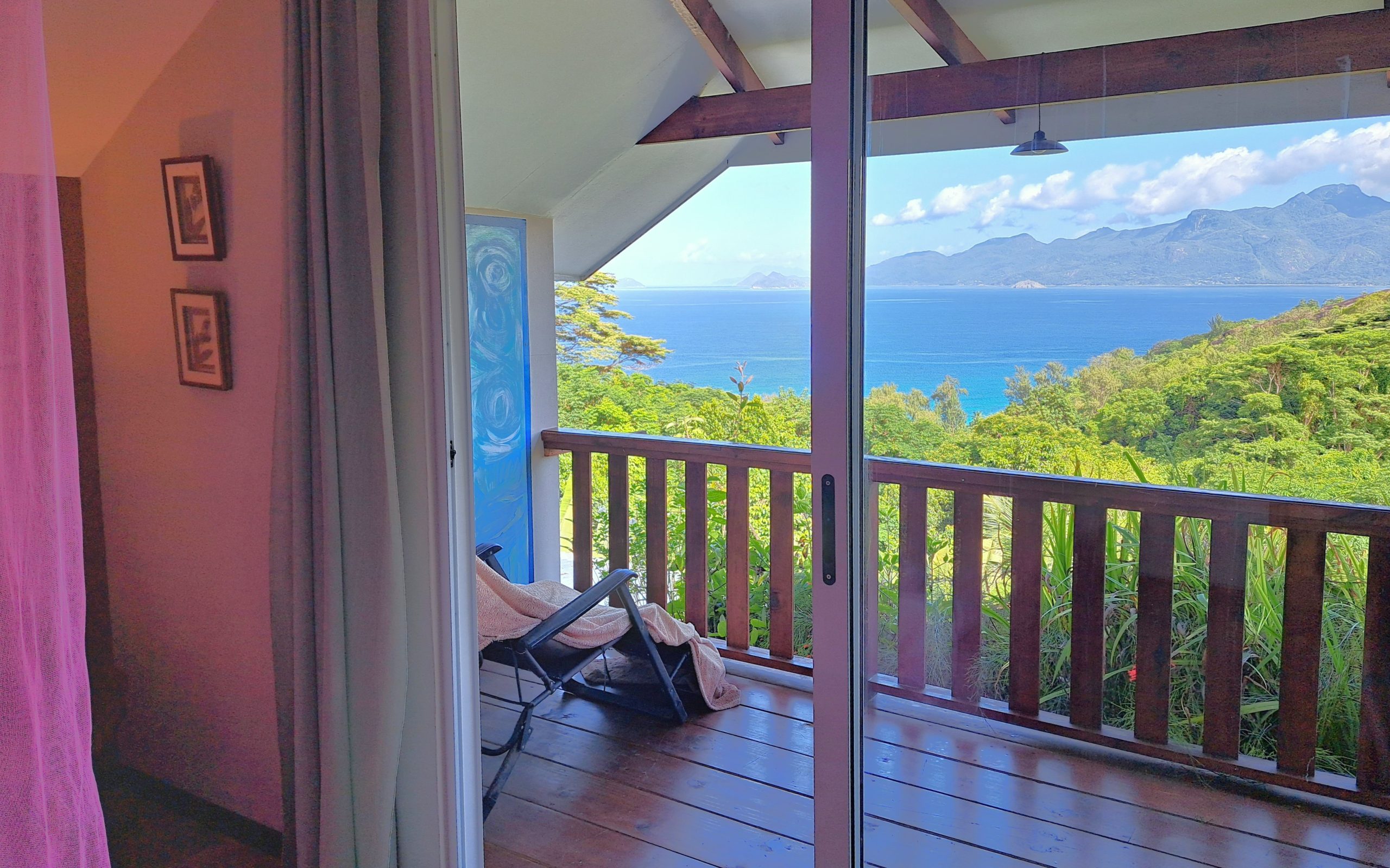 Das lichtdurchflutete Appartement bietet eine Küche für selfcatering und ein gemütliches Wohnzimmer, in dem Gäste den Tag miteinander ausklingen lassen können. Dank der ruhigen Lage und der oberen Etage genießen Besucher viel Privatsphäre und können die tropische Natur der Umgebung in Ruhe erleben. Ob entspannte Stunden auf der Terrasse, Spaziergänge entlang der Strände von Baie Lazare oder kleine Wanderungen in die tropische Landschaft – die Hibiscus Suite bietet eine ideale Kombination aus Komfort, Aussicht und Ruhe für einen unvergesslichen Aufenthalt auf den Seychellen.