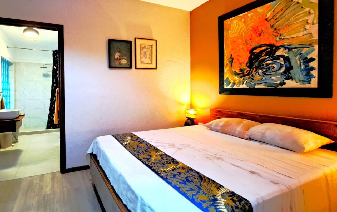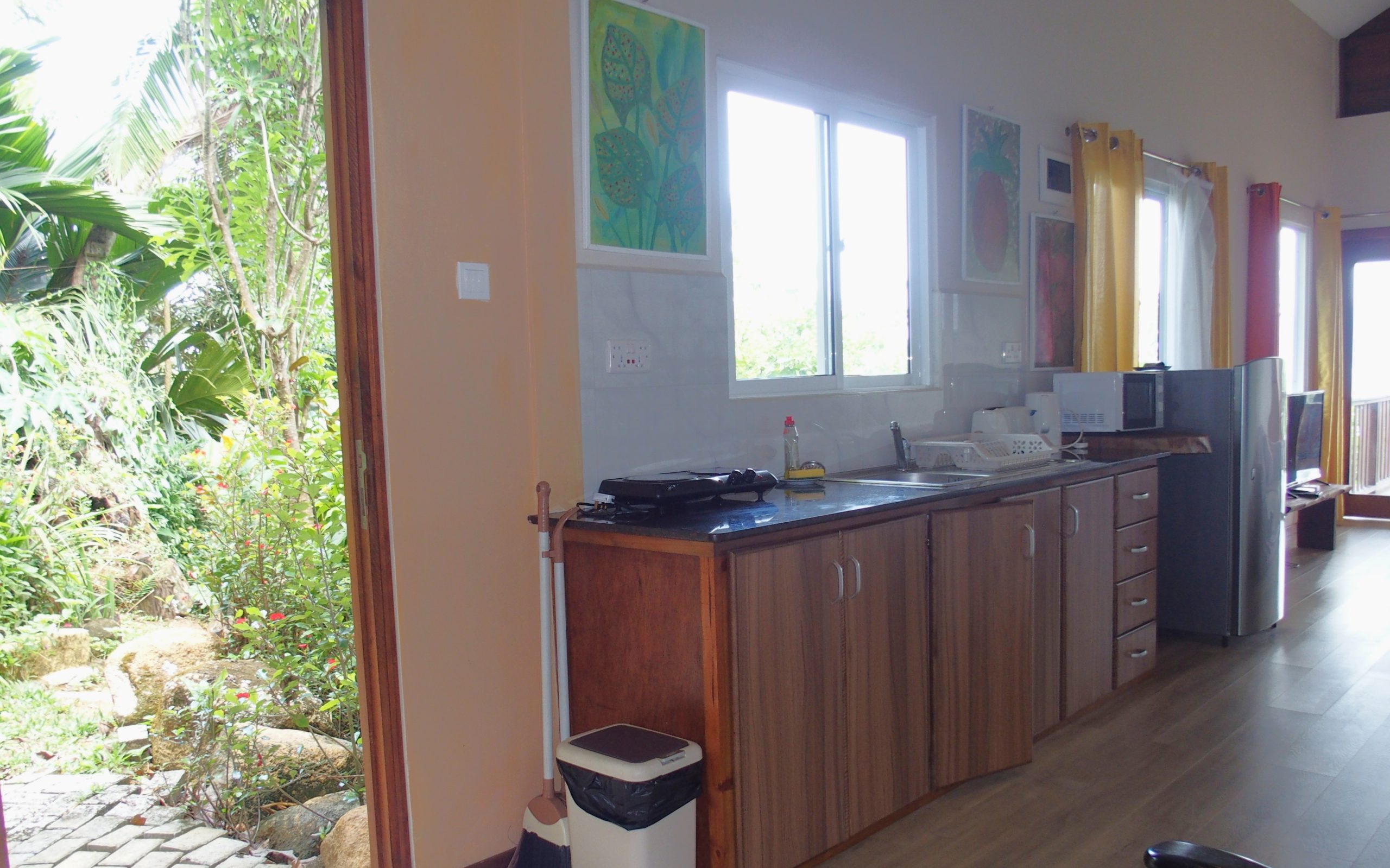 Das Appartement ist lichtdurchflutet und bietet eine Küche für self-catering, ein gemütliches Wohnzimmer und ausreichend Platz, um den Aufenthalt miteinander entspannt zu gestalten. Die ruhige Lage und die private Atmosphäre machen die Bisson-Suite ideal für Paare oder kleine Familien, die den Komfort einer Ferienwohnung mit Nähe zur Natur verbinden möchten. Gäste können Spaziergänge in die tropische Umgebung unternehmen, die Strände von Baie Lazare erkunden oder einfach die Ruhe und den Meerblick von der Terrasse aus genießen. Das Appartement Bisson vereint helle, offene Räume mit Privatsphäre und tropischem Flair für einen unvergesslichen Aufenthalt auf Mahé.